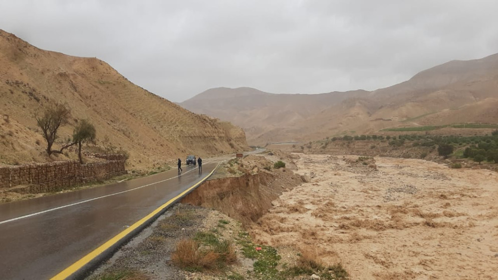 اغلاق الطريق الملوكي في الطفيلة اثر فيضان سد شيظم